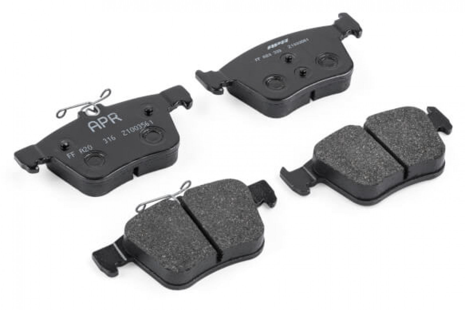 APR OE Replacement Advanced Street Pads are a direct upgrade for your factory brake. This pad material will remain fade-free to operating temperatures that far exceed typical OE pads. The material has a high friction co-efficient but is engineered to deliver torque curves that will extract the most from street-legal tires without overwhelming them and causing premature wheel lockup. The fairly low thermal conductivity of this friction material slows the rate of heat transfer to the brake calipers, pressure seals, and brake fluid. This pad compound delivers the type of pedal feel and fade resistance that is normally associated with entry-level race pads but it also delivers very good cold response and low disc wear, which a race pad would not when used on a streetcar. They pair perfectly with the APR Direct Replacement Brake Discs and provide a no-compromise solution for spirited daily driving.