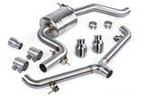 The APR Catback Exhaust System personalizes your vehicle's looks, sound and performance. Beautifully hand-crafted T304-stainless-steel components adorn the system with stunning TIG-welding throughout. Our straight-through brushed-finished muffler smooths the exhaust note to a deep growl, without adding restrictions, rasp or drone. Strong high-quality bracketry and OEM-style clamps hold the system steadily in place, making the install or removal a snap, and fitment simple, yet precise. A cast 3" to dual 2.5" rear splitter creates an ultra-smooth transition, steadily feeding exhaust gasses out of the system, while looking tidy from under the rear bumper. Finally, removable 4" polished slash-cut exhaust tips finish the system, adding a classy motorsport-inspired touch to the rear of the vehicle.