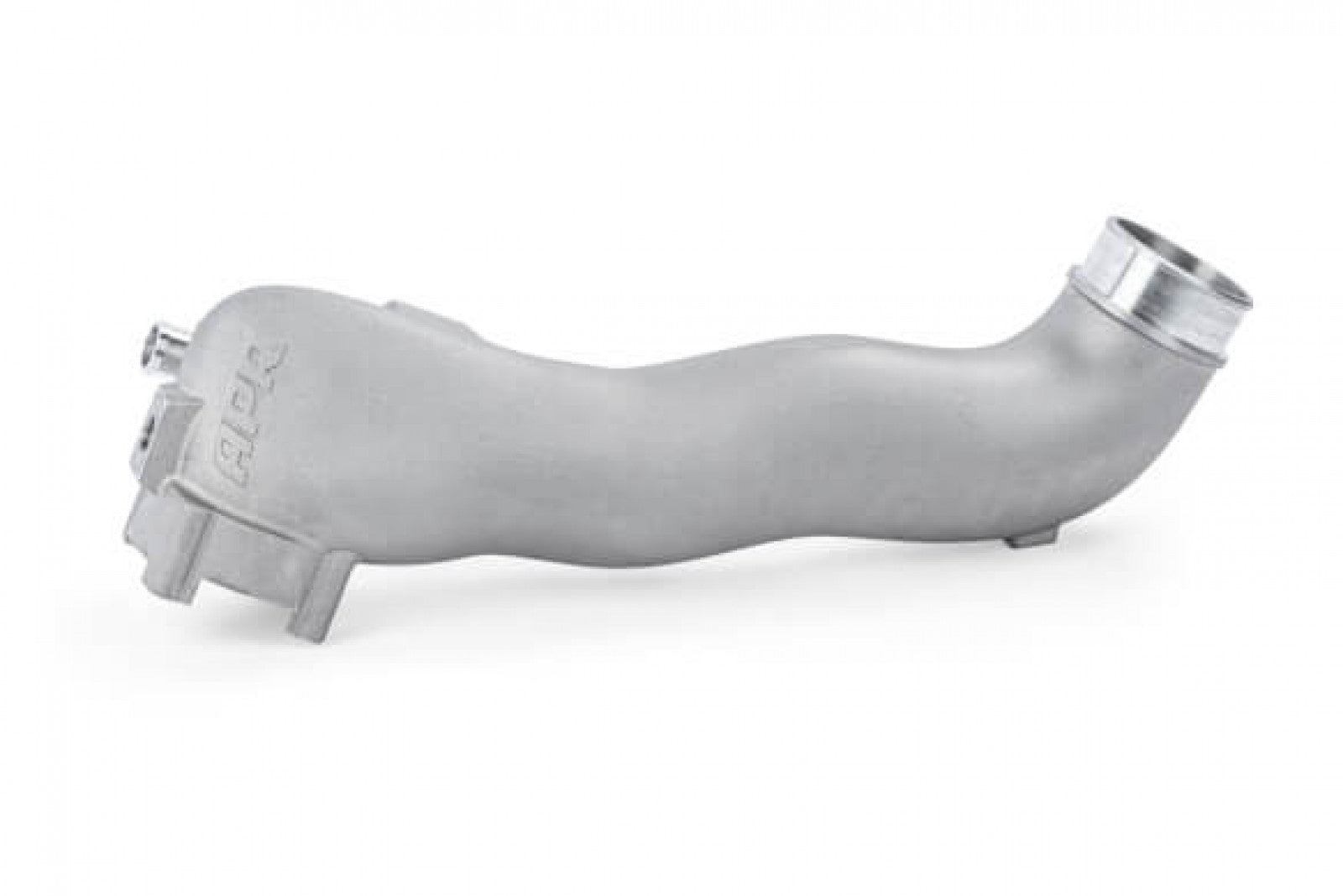 The APR Throttle Body Inlet System is a comprehensive upgrade to the factory charge pipe system from the intercooler outlet to the throttle body. We replace all components and provide a new, larger, free flowing system that flows roughly 34% more than stock! This was achieved by increasing the cross sectional area of the system and by reducing the tight radius bend directly in front of the throttle body. Our system does away with two potential boost leak points thanks to our single cast design. We've upgraded the factory rubber intercooler outlet hose to a multi-ply wire-reinforced silicone design with strong t-bolt clamps that resist boost leaks better than their stock counterparts. Our new billet throttle body to manifold adapter provides a convenient boost and vacuum reference point which can be used for a gauge, or anything else in that suits your build. Lastly the system comes complete with new throttle body and intake manifold gaskets, which are common problematic leak point many never know to address. This comprehensive system is much larger than stock thanks to the sweeping design of the cast inlet pipe, and oversized silicone hose. However, despite being dramatically larger than stock, the complete system is a negligible 2.4 lbs over stock! Simply put, the APR system is a complete upgrade from start to finish, flows better than stock and our competition, and is the only throttle body inlet system you'll ever need!